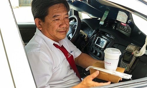 Tài xế taxi ăn trưa tại khách sạn Movenpick Resort ở đảo Phú Quốc, Waverly.